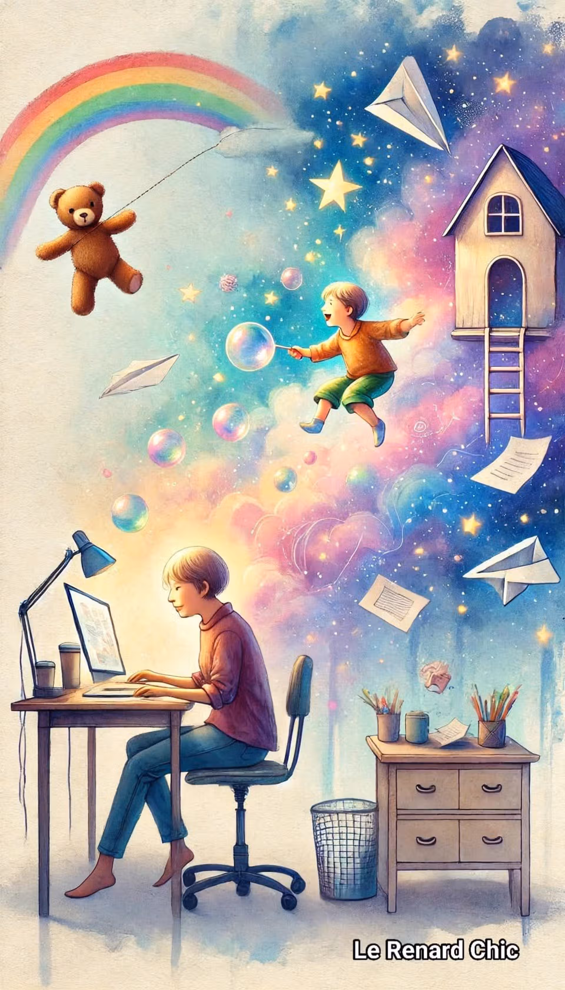 Peut-être entre deux obligations, sous une pile de responsabilités, ou derrière l’étiquette d’ »adulte sérieux ». Pourtant, il est toujours là, patient, rêveur et joueur, prêt à émerveiller votre vie.